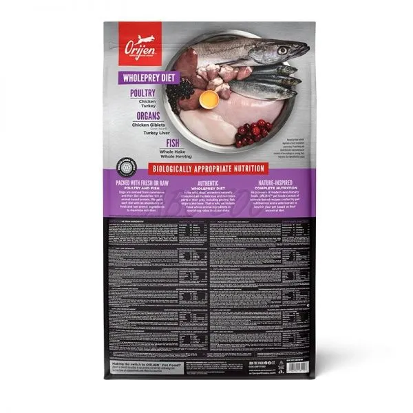 • Dieta naturală conține doar o cantitate mică de carbohidrați, deci Orijen nu conține cartofi - conține mai puțin de jumătate din conținutul de carbohidrați în comparație cu alte alimente convenționale
