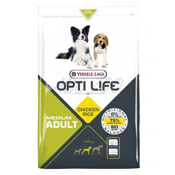 Opti Life Adult Medium hrană perfect echilibrată în nutrienţi, care satisface pe deplin nevoile nutriționale ale câinilor de talie medie.