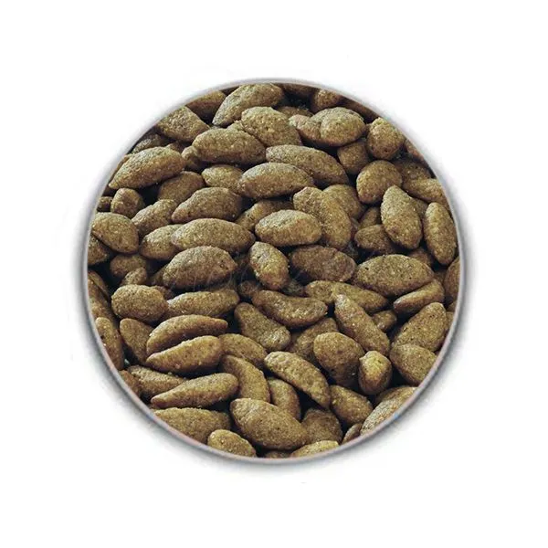 Compoziție: somon (14%), orez (14%), porumb, proteine de somon deshidratat, făină de gluten de porumb, făină de porumb, făină de soia, grăsimi vegetale, produse de origine vegetală, pulpă uscată de sfeclă, ouă uscate, amidon de porumb, minerale, ulei de pește, rădăcini de cicoare deshidratate, ulei de soia.