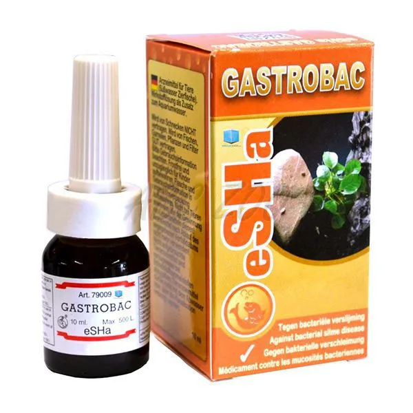 Prepararea eSHa GASTROBAC este la doza sigură recomandată pentru pești, plante, creveți și bacterii benefice. Este toxic pentru melci. La rezultate nule sau slabe, înlocuiți 50% din apă și repetați tratamentul. eSHa GASTROBAC este potrivit de asemenea ca și dezinfectant pentru plantele achiziționate recent.