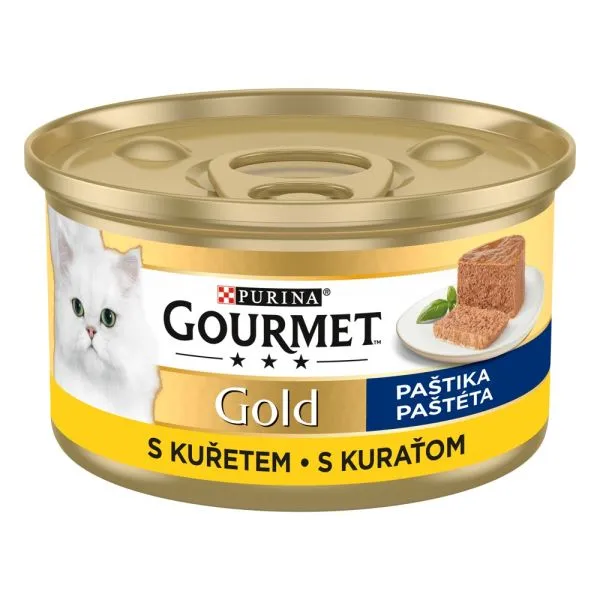 Conservă Gourmet GOLD - pateu cu carne de pui, 85g Pateu delicios cu carne de pui potrivit pentru pisici adulte de orice talie.