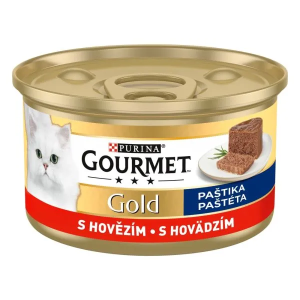 Conservă Gourmet GOLD - pateu cu vită, 85g Pateu delicios cu carne de vită potrivit pentru pisici adulte de orice talie.