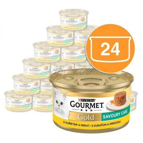 Conservă Gourmet GOLD - Tort savuros cu carne de pui și morcovi 24 x 85g