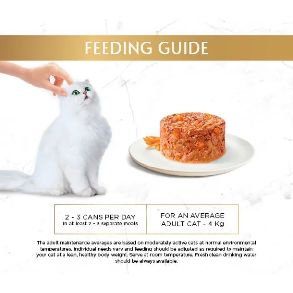Conservă Gourmet GOLD - Tort savuros cu carne de pui și morcovi 85g Rețetă specială din carne de pui și morcovi în suc de roșii potrivită pentru pisici adulte de orice talie.