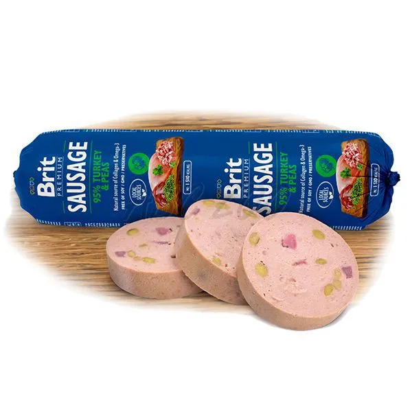 Cârnați cu carne de curcan și mazăre  potriviți pentru cainii de toate varstele.