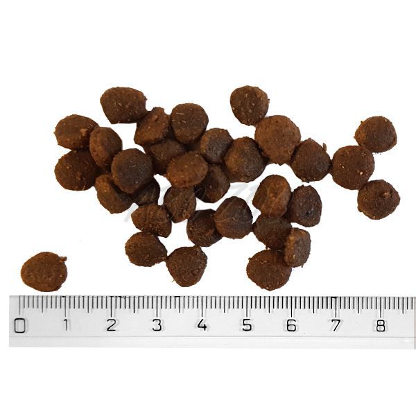 Compuși analitici: proteine 29%, grăsimi 18%, umiditate 10%, cenușă 8,4%, fibre 2,5%, calciu 1,6%, fosfor 1,3%, acizi grași Omega-3 1,1%, acizi grași Omega-6 2,3%