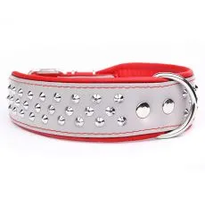 Zgardă gri cu roșu cu capse.
