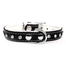 Zgardă pentru câine negru-alb realizat din piele decorată cu cristale.
