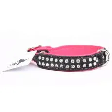 Zgardă colorată negru cu roz realizată din piele de calitate decorată cu cristale.