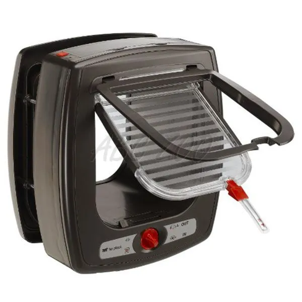 Ușă rabatabilă FERPLAST SWING MICROCHIP echipată cu sistem care este capabil să recunoască cipul introdus sub pielea pisicii.