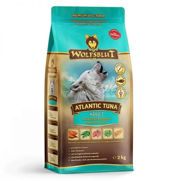 Hrană fără cereale cu ton și potrivită pentru toate rasele de câini adulți. Este o hrană acceptată de toții câinii care suferă de alergii sau care au o digestie sensibilă.