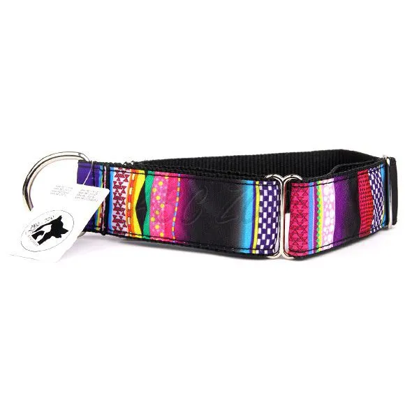 Zgardă realizată din nailon cu model colorat potrivită pentru ogari. Mai multe detalii