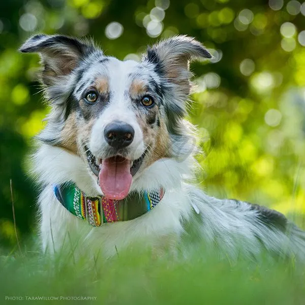 Zgardă realizată din nailon cu model colorat, potrivită pentru ogari.