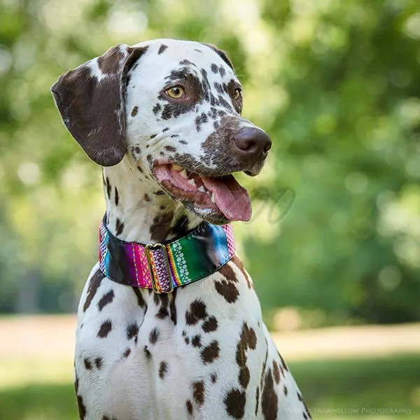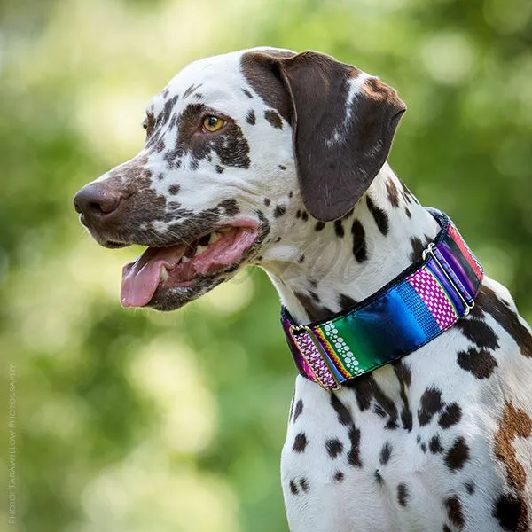 Zgardă realizată din nailon cu model colorat, potrivită pentru ogari.