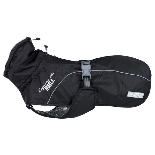 Haină de iarnă neagră Explore Winter Coat "XS" cu guler înalt și elemente reflectorizante potrivită pentru câini de talie mică.
