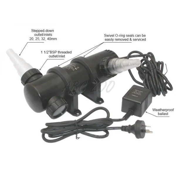 Foloseşte UV - C pentru tratamentul apei. Elimină eficient turbiditele cauzate de alge mici sau germeni şi distruge germenii patogenici în apă, şi previne bolile să se dezvolte.Datorită funcţionării pure fizice (raze ultra violete), nu încarcă apa cu chimicale. Nu este dăunător pentru flora bacterială dinăuntrul filtrului.Intrarea şi ieşirea apei sunt făcute pentru toate mărimile furtunilor - pentru furtunuri mai subţiri 16/22 mm,nu este necesar să se încălzească furtunul deasupra flăcării şi,după ce se înmoaie,este posibil să fie aşezată cu grijă pe terminaţia lampei UV.