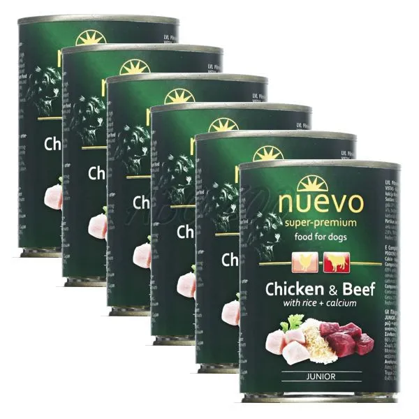 Conservă NUEVO DOG Junior Chicken & Beef 6 x 400 g