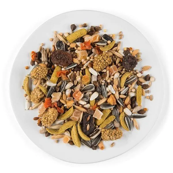 Ingrediente semințe (11 % semințe de floarea soarelui), semințe, produse secundare vegetale, fructe (2 % stafide, 2,5 % papaya), minerale, legume (0,25 % oregano), uleiuri și grăsimi,ouă și produse secundare 0,2 %