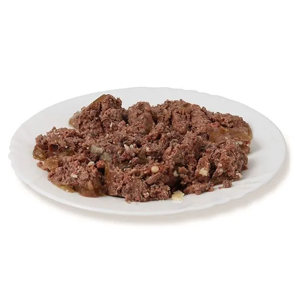 Ingrediente: carne de vită (inimă, carne, uger, rinichi) 39 %,miel (ficat, plămâni) 26 %, carbonat de calciu.