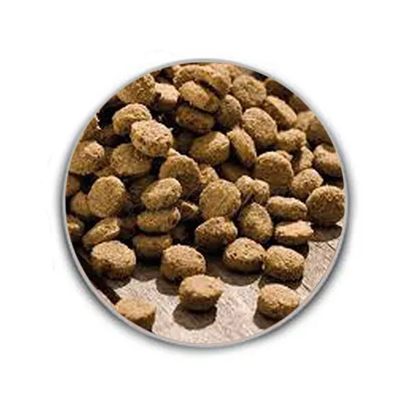 Ingrediente: făină de carne de pasăre, grâu integral, făină de grâu, grăsime de pasăre, boabe întregi de porumb, făină de porumb, făină de orez, orz integral, grăsime de vită, făină de pește, ficat hidrolizat, pastă de sfeclă de zahăr, turte de mere uscate (0,8%), drojdie de bere uscată, clorură de sodiu, malț, ovăz verde uscat, floarea-soarelui uscat, creson uscat, patrunjel uscat, ierburi verzi în total 0,3%.