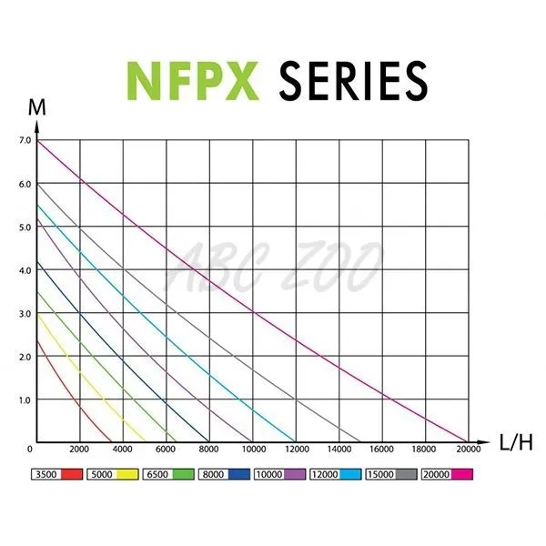 Pompă pentru iazuri Aquanova NFPX 3500 cu debit de apă 3500 l / h și H-max 2,5 m.