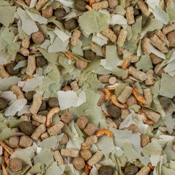 Aliment complet sub formă de amestec variat de fulgi, trei tipuri de hrană uscată și gammarus întregi pentru hrănirea peștilor din iaz pe tot parcursul anului. Datorită ingredientelor naturale atent procesate, susține creșterea sănătoasă, imunitatea puternică și vitalitatea peștilor de toate dimensiunile.