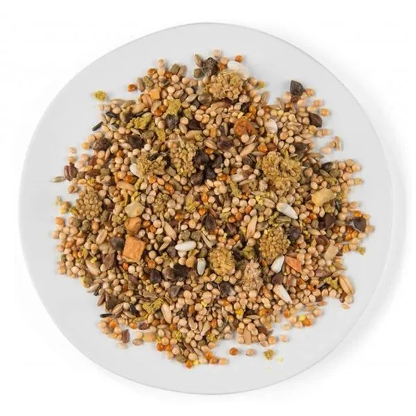 Ingrediente: semințe (3 % semințe de in, 2 % mei, 2 % seințe de floarea soarelui), semințe, produse secundare vegetale, fructe (0,75 % mere), minerale, uleiuri și grăsimi, legume, ouă și derivate 0,2 %