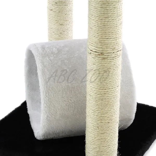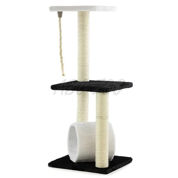 Alb - negru Scărpinător pentru pisici cu tunel, frânghie și platforme. Mai multe detalii