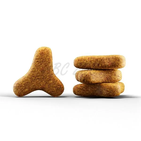 Ingrediente: făină de carne de pasăre (păsări de curte 20%, rață 6%),porumb, mălai, grăsime de pasăre, cartofi uscați, pulpă de sfeclă de zahăr, celuloză, proteine de porumb, proteine de păsări de curte (hidrolizate), minerale, ficat de pasăre (uscat), psyllium