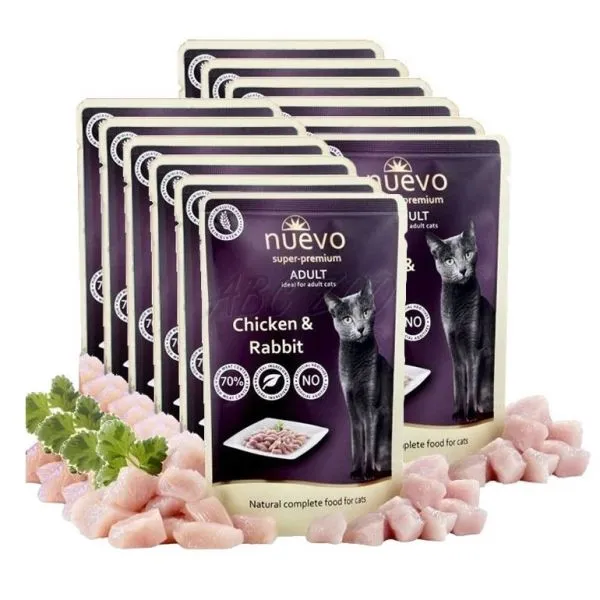 Pliculeț NUEVO CAT Adult pui & iepure 12 x 85 g