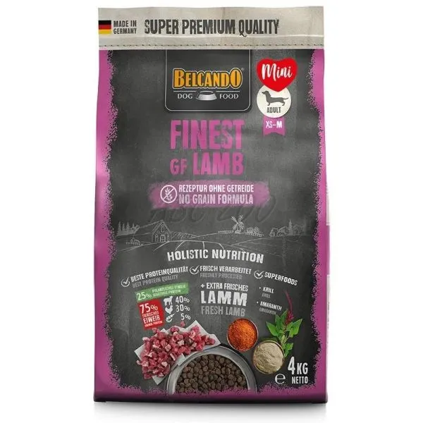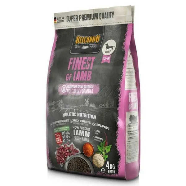 Hrană super premium fără cereale, pentru câinii adulți, cu carne de miel ușor digerabil, pentru câini de talie mică şi medie, cu intoleranță la gluten sau alergii la cereale.