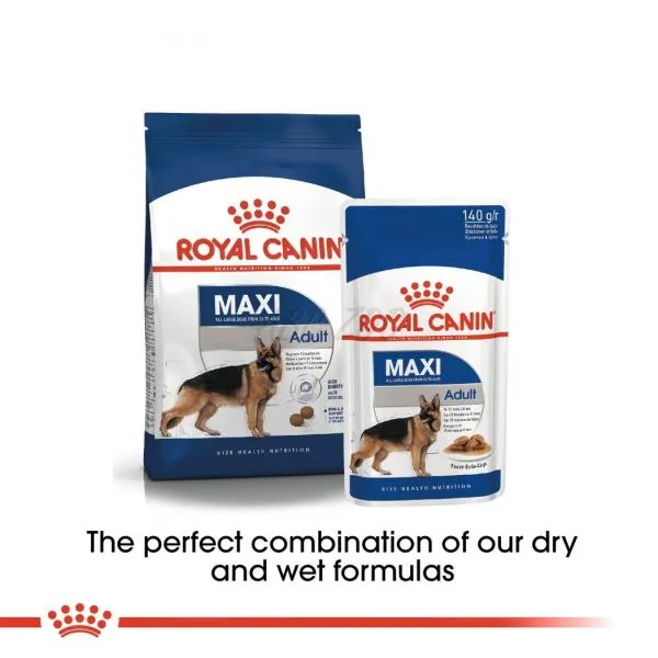 Pentru a satisface gusturile cât mai multor câini, hrana ROYAL CANIN® Maxi Adult este disponibilă și ca hrană uscată, cu crocante și delicioase boabe.