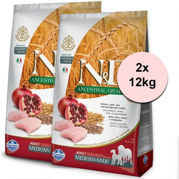 Farmina N&D dog LG MEDIUM & MAXI Pui și rodie 2 x 12 kg