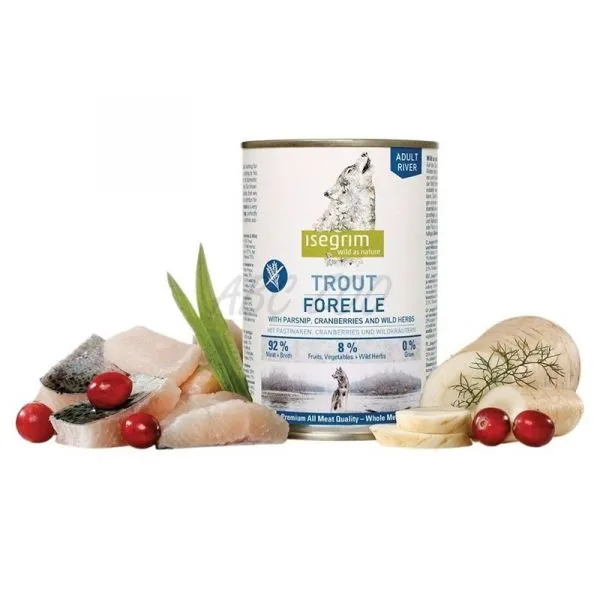 ISEGRIM Adult River: Păstrăv cu păstârnac și merişoare 800 g