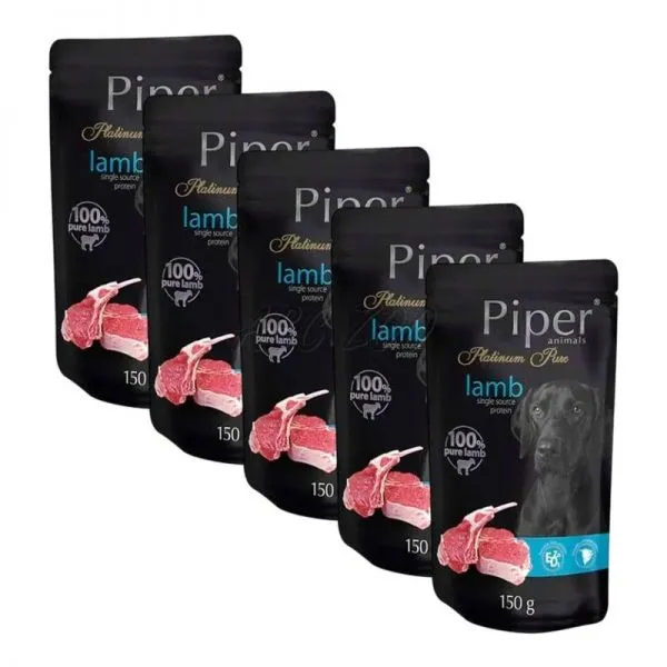 Piper Platinum Pure hrană la plic cu carne de miel 5 x 150 g