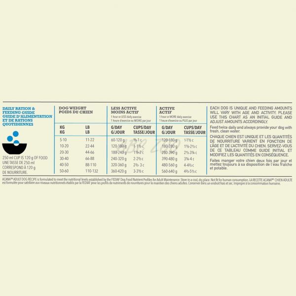 Acana Adult Food este o hrană plină de ingrediente locale proaspete, cum ar fi păsările de curte, ouă din cuibar, peștii proaspăt pescuiți precum și fructele și legumele coapte la soare. Toate aceste ingrediente nutritive conferă hrănii un gust bun și asigură condiții bune pentru câinii de rasă mică.