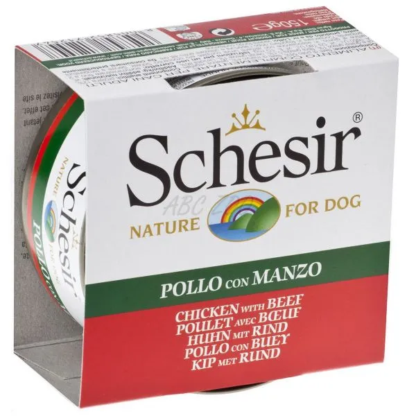 Schesir conservă, pentru câinii adulți, cu pui și vită în gelatină. Mai multe detalii