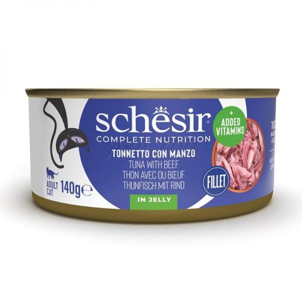 Schesir conservă, pentru pisicile adulte, ton cu vită în gelatină. Mai multe detalii