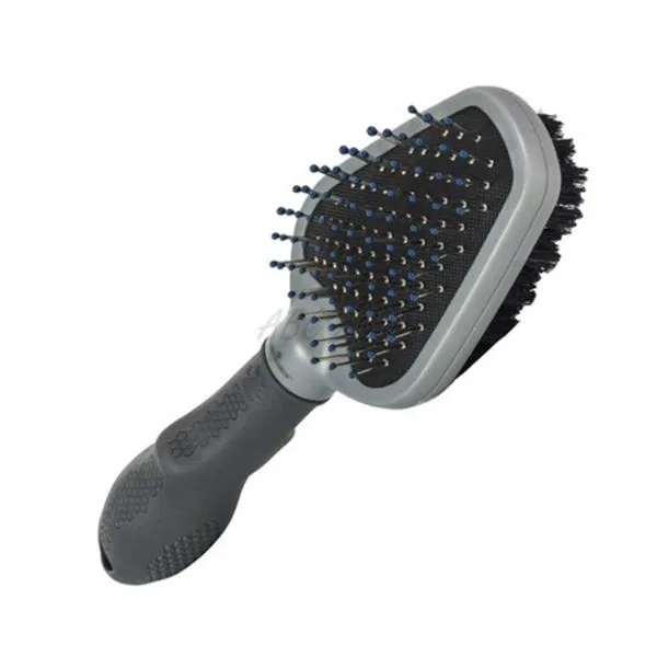 • pe o față are o perie cu ace metalice și vârfuri cu bile pentru pieptănat și înlăturat părul căzut, iar pe cealaltă față are zimți fin care aranjează aspectul final al blănii