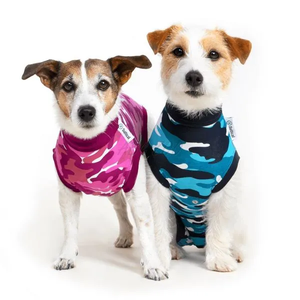 • cămașa de protecție reduce stresul, teama și nesiguranța animalului după operație, îi ține de cald și îl menține uscat