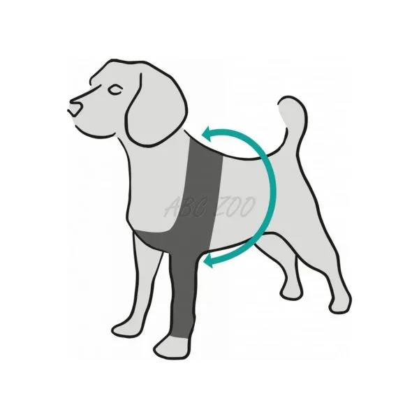 • fixarea în jurul pieptului face îmbrăcarea să fie ușoară și, în plus, câinele nu și-o poate da jos singur