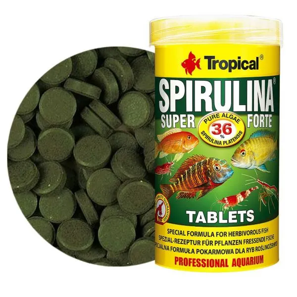 • utilizarea regulată a mâncării poate cauza o intensificare în culoarea peștilor, mulțumită carotenoidelor din Spirulina