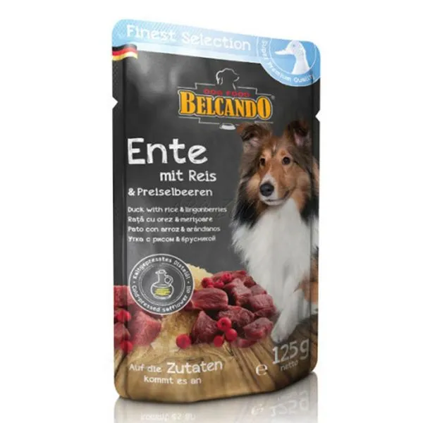 BELCANDO pungă 125 g -rață cu orez și merișoare.