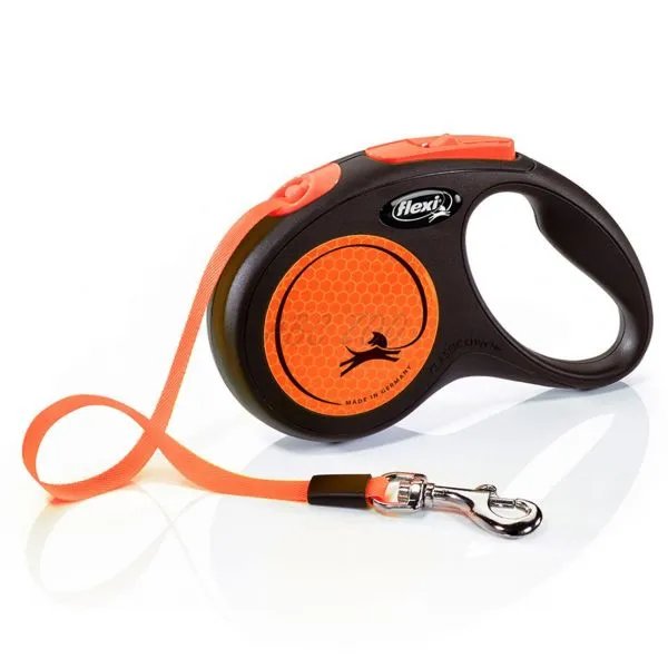 Lesă Flexi NEW NEON S de până la 15kg, cu bandă de 5m– oranj