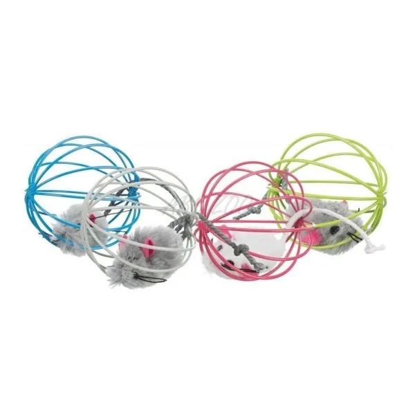 Minge din sârmă, jucărie pentru pisici - cu un șoricel în minge.