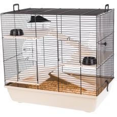Cușcă distractivă pentru rozătoare mici, cu accesorii complete. Culoare bej a tăviței.