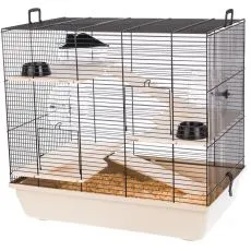 Cușcă distractivă pentru rozătoare mici, cu accesorii complete. Culoare bej a tăviței.