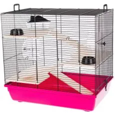 Cușcă distractivă pentru rozătoare mici, cu accesorii complete. Culoare roz a tăviței.