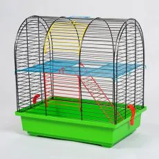 Cuşcă pentru hamsteri, în care se gaseste: etaj, tunel cu arcuri, scară.