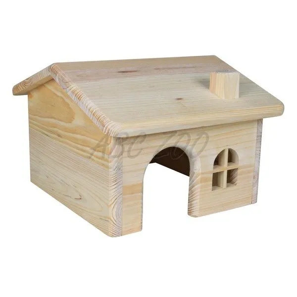 Căsuţă pentru rozătoare cu acoperişul înclinat, cu fereastră şi coş de aerisire, construită din lemn.   Mai multe detalii